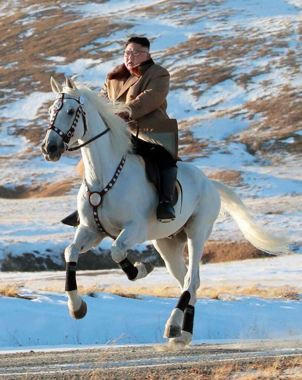 将軍様が白馬に乗った写真に