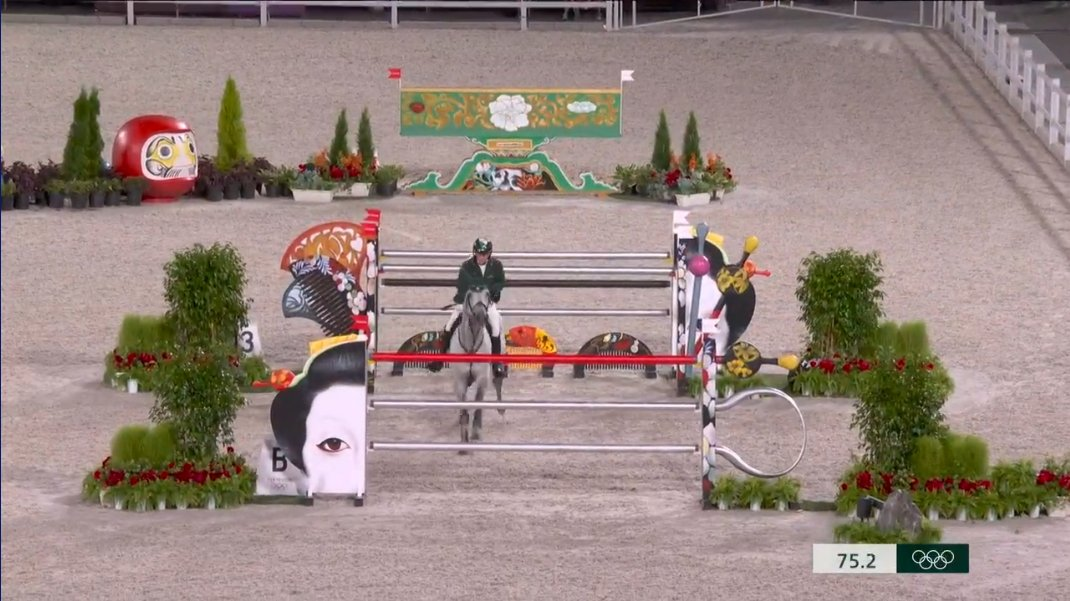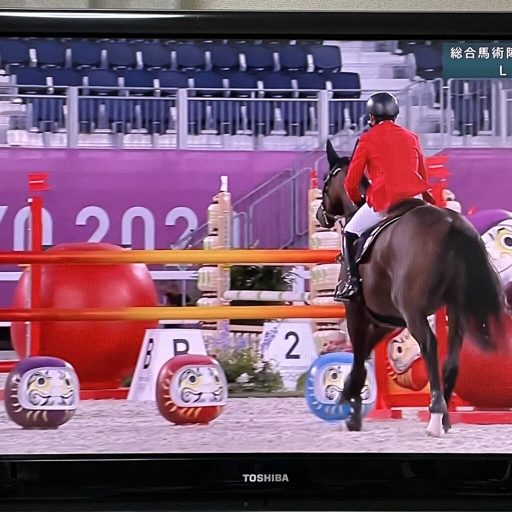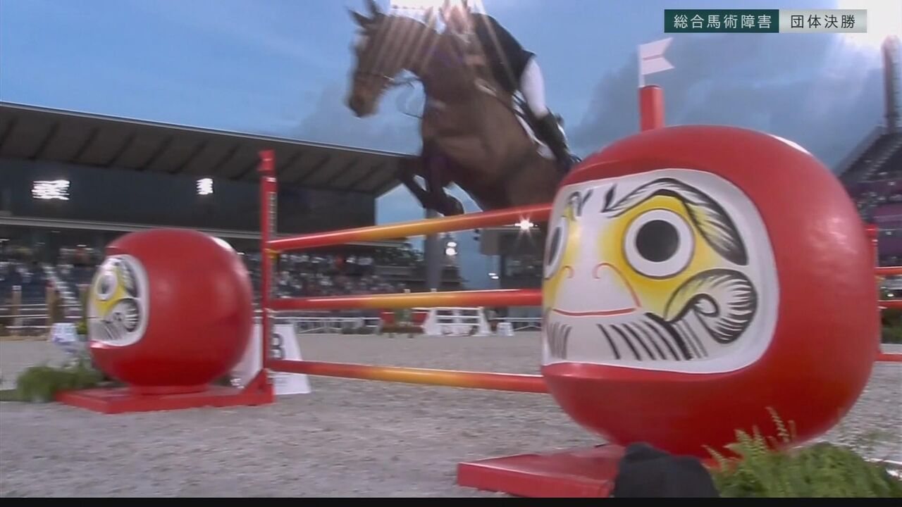 東京五輪は2日、総合馬術の最終種目の障害飛越が行われ、「だるま」があしらわれていた障害で失敗する選手が続出した。