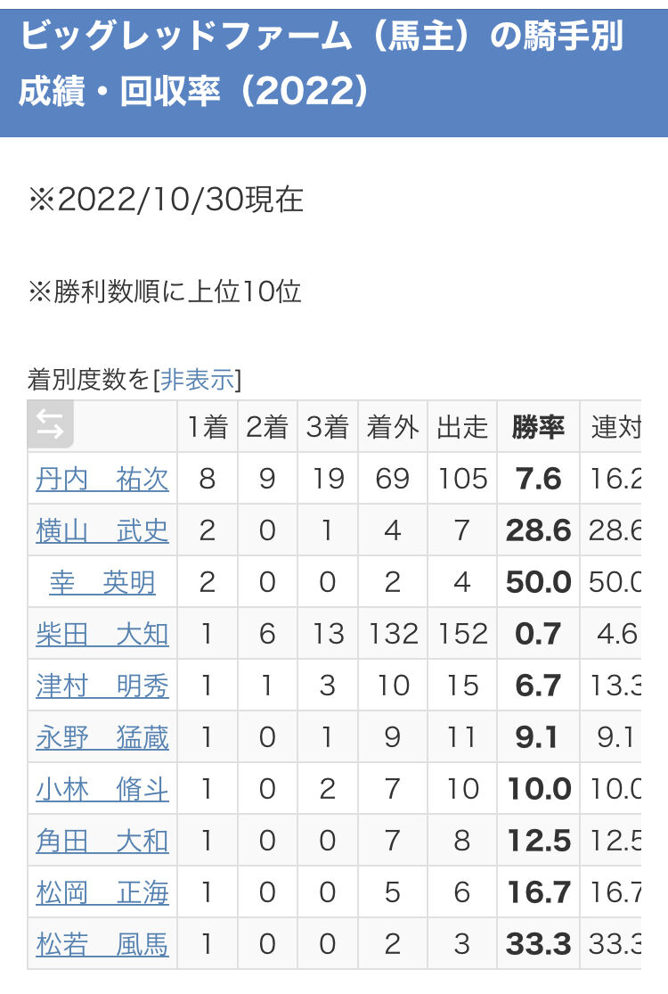 なおこの間5~6頭に乗り替わりで勝たれている模様